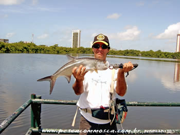 Na própria lagoa, em mais de um ponto, pudemos constatar o lançamento de dejetos, o que certamente se traduz em crime ambiental. Assim como todas as cidades do sul e sudeste, Recife também sofre com a falta de saneamento básico, e evidentemente, os primeiros agredidos são os rios, lagos, lagoas e mares. Mas isto é apenas mais uma prova de que o homem usa a natureza com total desrespeito, e esta, a todo custo, ainda consegue sobreviver. Tanto que o exemplo está aí: muitos Baby Tarpons. No entanto, se a situação continuar como está, num futuro não muito distante ela tem tudo para figurar nas estatísticas de lugares mortos e poluídos. |